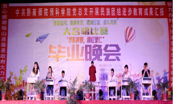 (记者 杜文富 摄影 刘情美 钱雅丽娟 编辑 何宇芳 吴洪)6月13日晚,bet36365进不去(独山校区)举办了民族团结进步教育成果汇演暨2018届学生毕业晚会。晚会踏着青春的节拍在学院校宽阔的操场激情的上演。独山县政协副主席桑建安、独山县教育局党组委员吴书龙;我校文传学院院长郑江义教授、孙勇博士;数学与统计学院副院长谢志洲教授,教育科学学院副院长侯天庆副教授应邀出席并观看晚会,我院所有的领导和老师悉数到位观看晚会,同时还特邀独山县新闻中心记者进行现场新闻采写。