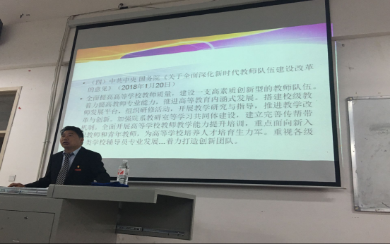 讲座的内容包括:习近平总书记2014年9月9日在北师大讲话;2017年10月18日党的十九大报告关于教育内容摘要;李克强2018年3月5日政府工作报告;2018年1月20日中共中央国务院《关于全面深化新时代教师队伍建设改革的意见》。