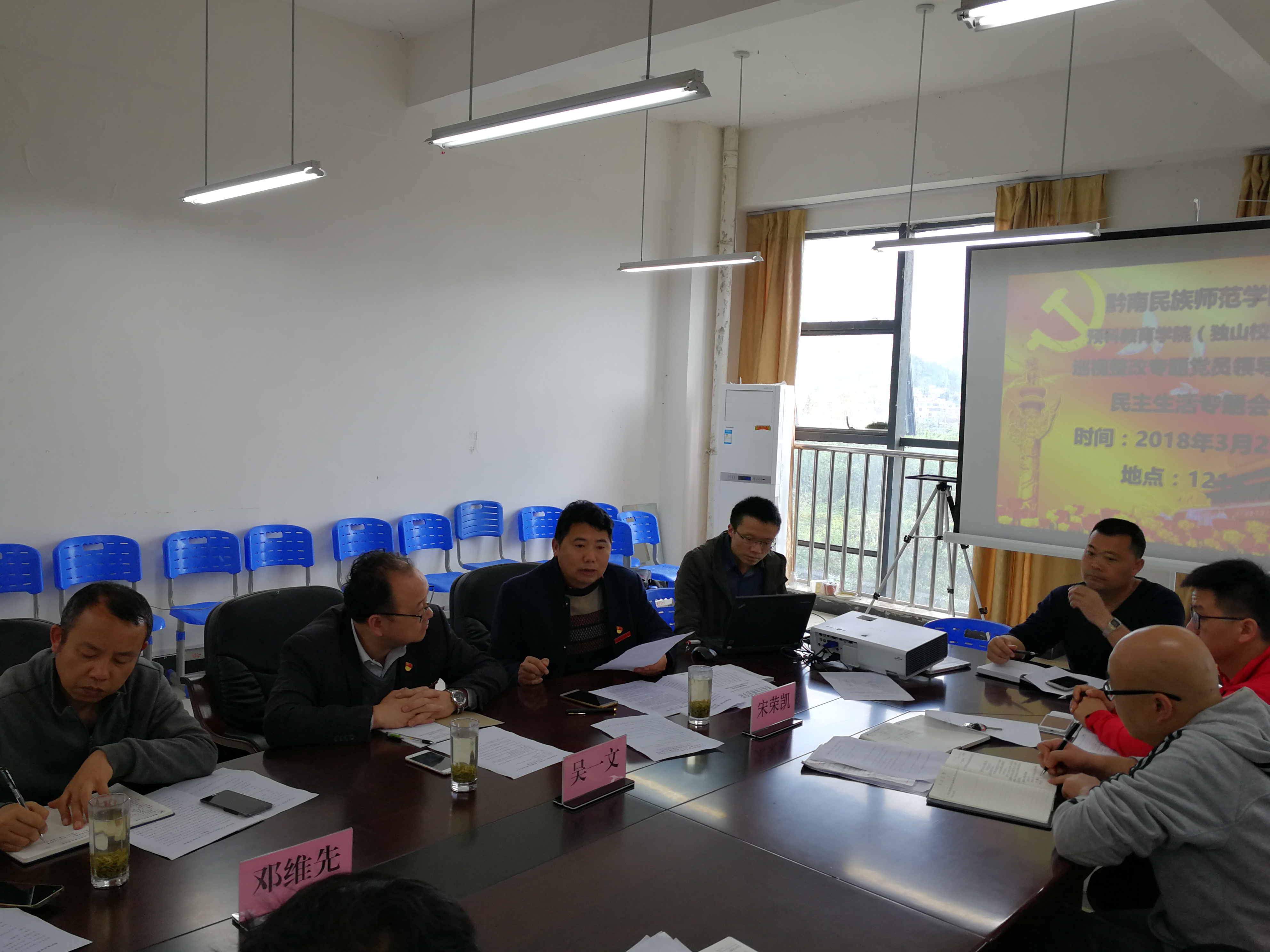 按照学校党委党组织巡视整改专题民主生活会有关要求和预科教育学院(独山校区)巡视整改专题民主生活会方案,2018年3月29日上午9点30分,在我院1214会议室召开专题民主生活会,副校长吴一文教授出席了本次民主生活会,学院党总支、全体党员、全体科级干部参加了本次会议。